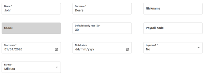 - Enter employee details. All fields with an * are required.