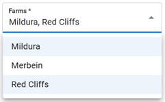 - When selecting farms that the employee works at, multiple can be selected. All farms highlighted in blue are selected. Click again to deselect.