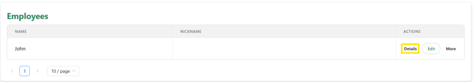 - Find relevant employee within the list, select 'Details'Here you will be able to view all the info you have entered