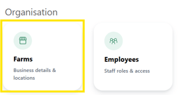 ) in the top left corner of the dashboard, select 'Farm Setup', then 'Farms' under the Organisation: