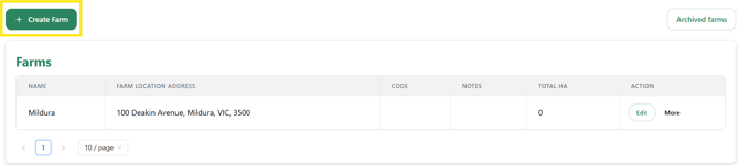 If you have multiple properties within the business, you will have to create a new farm for each one. This way, when blocks are created, they can be allocated to the respective farm/property.
