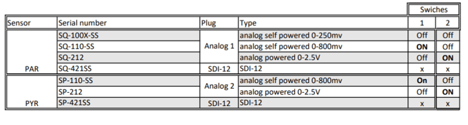- PYR – check sensor serial number to sensor reference table for the correct port